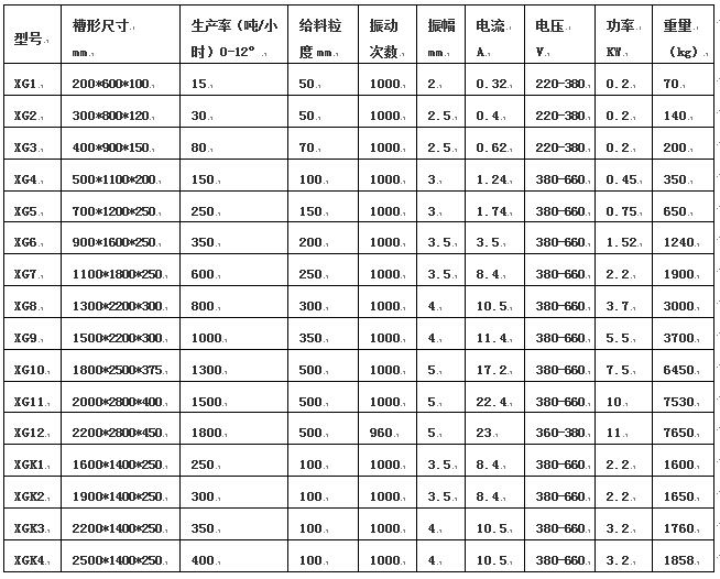 4、振幅频率、槽体化倾角可调、便于控制给料速度和给料量。